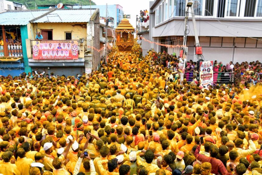 ಗೋಕಾಕ ಜು 2 : ಹತ್ತು ವರ್ಷಗಳ ನಂತರ ನಡೆಯುತ್ತಿರುವ ಗೋಕಾಕ ಗ್ರಾಮ ದೇವತೆಯರ ಒಂಭತ್ತು ದಿನಗಳ ಮಹಾಜಾತ್ರೆಯ ಸಂದರ್ಭದಲ್ಲಿ ನಡೆಯುವ ಮೂರು ದಿನಗಳ ರಥೋತ್ಸವವು ಬುಧವಾರ ಅದ್ಧೂರಿಯಿಂದ ಆರಂಭಗೊಂಡಿತು. ಲಕ್ಷಾಂತರ ಜನರು ರಥೋತ್ಸವದಲ್ಲಿ ಪಾಲ್ಗೊಂಡು ಭಂಡಾರದಲ್ಲಿ ಮಿಂದೆದ್ದರು.